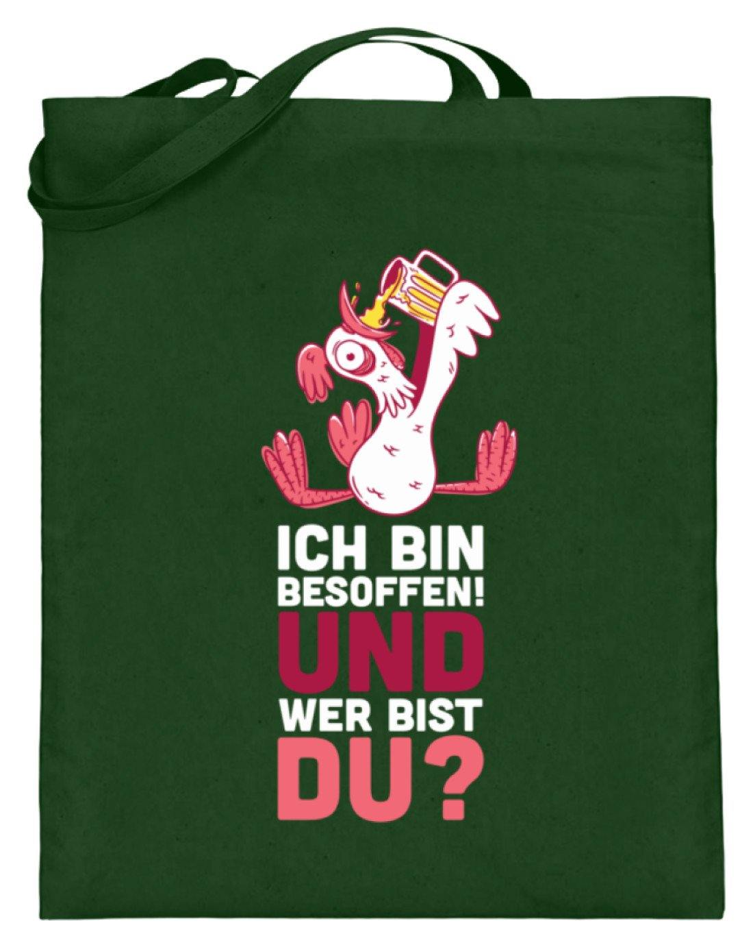 Ich bin Besoffen! Wer bist Du? - WOS  - Jutebeutel (mit langen Henkeln) - Words on Shirts Sag es mit dem Mittelfinger Shirts Hoodies Sweatshirt Taschen Gymsack Spruch Sprüche Statement