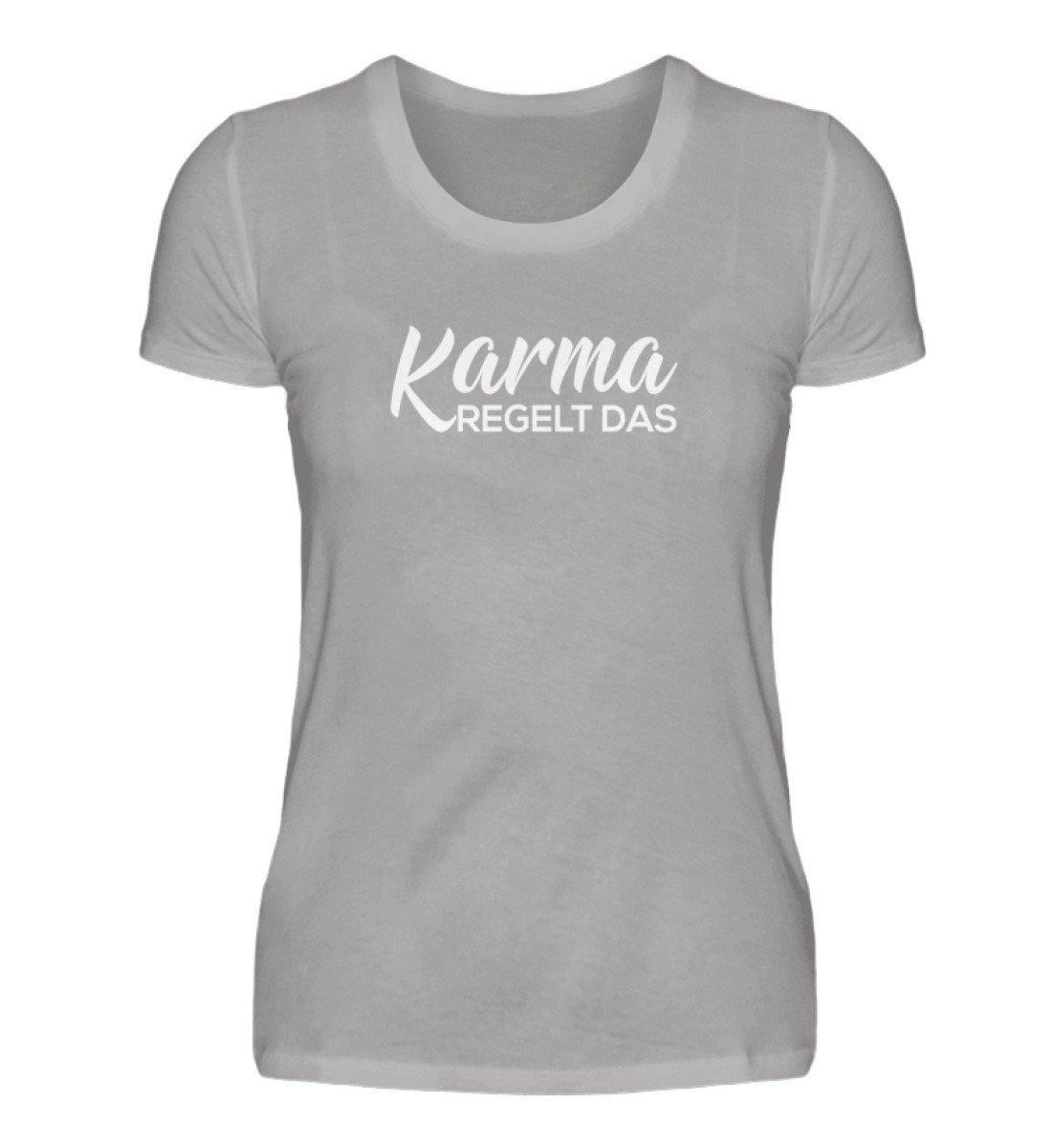 Karma regelt das-  Words on Shirts - PR  - Damen Premiumshirt - Words on Shirts Sag es mit dem Mittelfinger Shirts Hoodies Sweatshirt Taschen Gymsack Spruch Sprüche Statement
