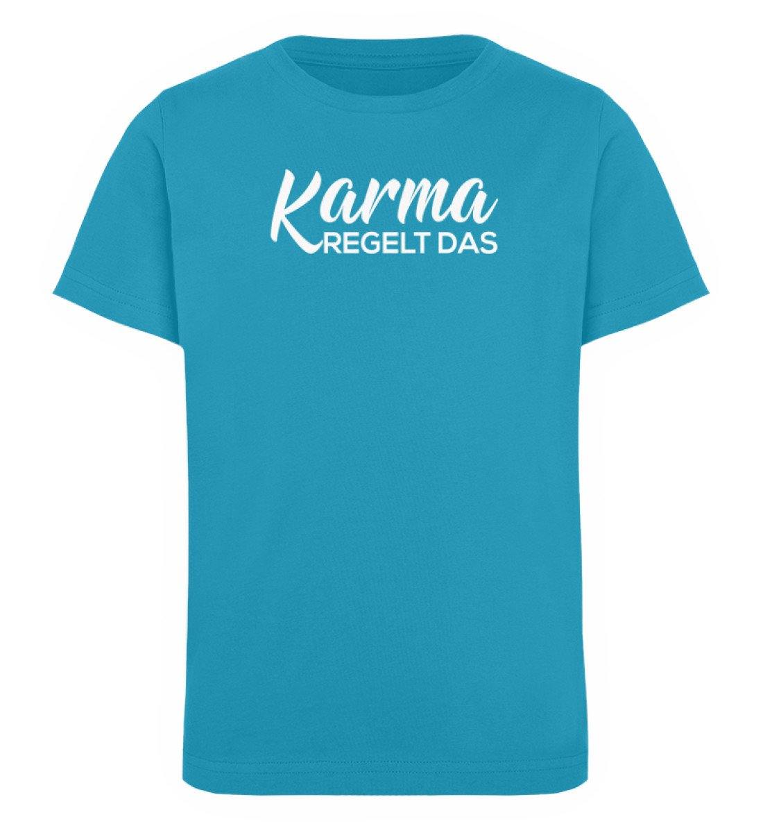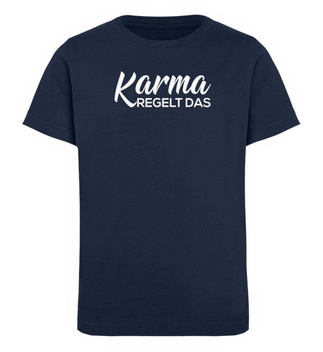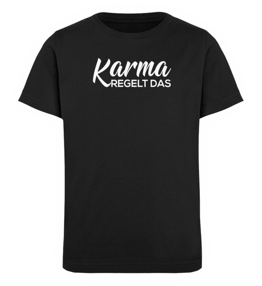 Karma regelt das-  Words on Shirts - PR  - Kinder Organic T-Shirt - Words on Shirts Sag es mit dem Mittelfinger Shirts Hoodies Sweatshirt Taschen Gymsack Spruch Sprüche Statement