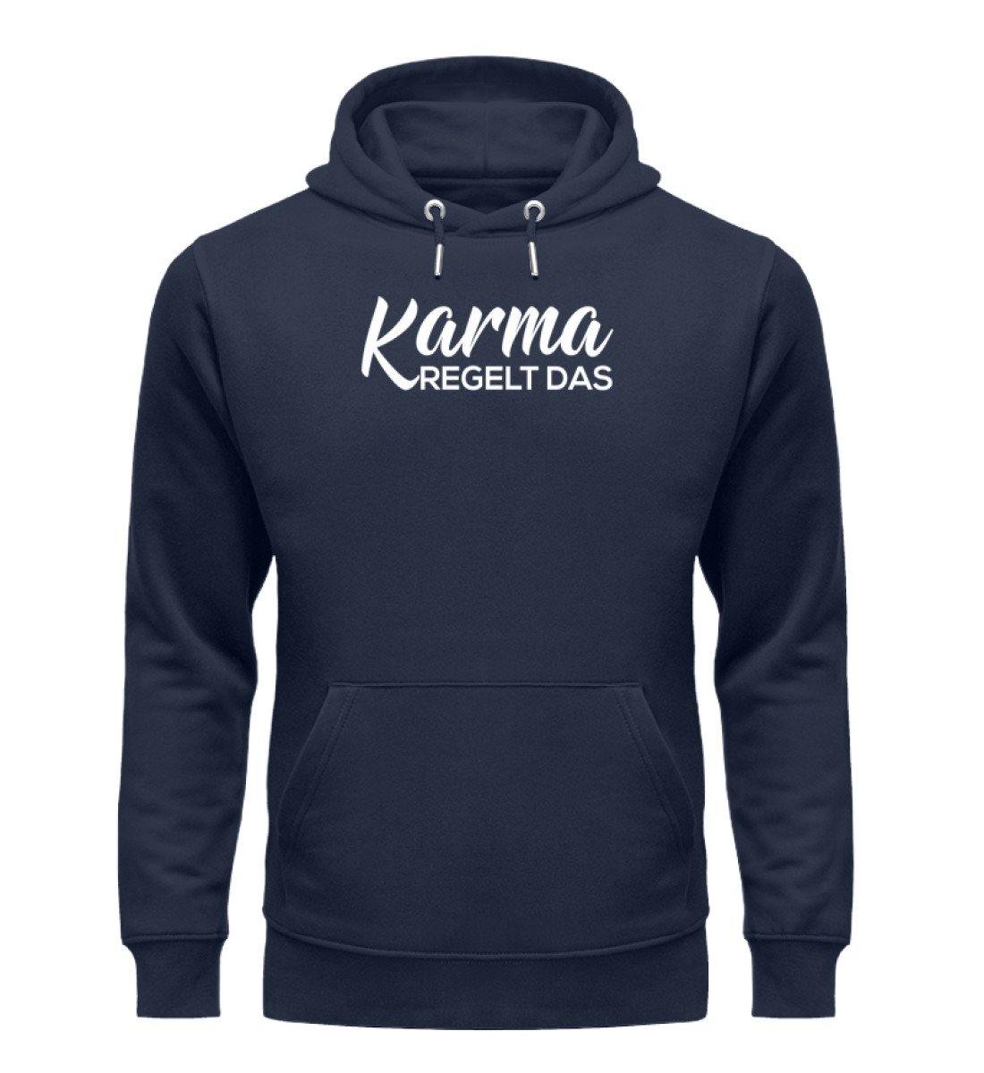 Karma regelt das- Words on Shirts - PR  - Unisex Organic Hoodie - Words on Shirts Sag es mit dem Mittelfinger Shirts Hoodies Sweatshirt Taschen Gymsack Spruch Sprüche Statement
