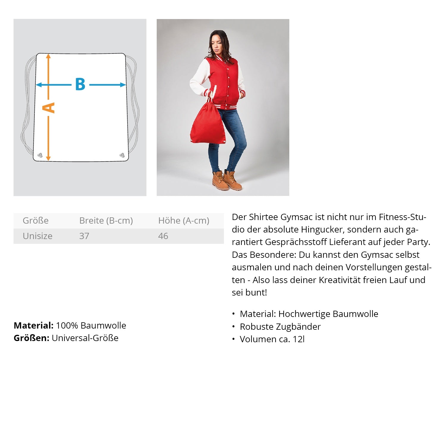 Dieses einzigartige Design ist die perfekte Alternative zum alltäglichen Standard  und überzeugt als zeitloses Unikat. Die stilvollste Art Bücher, Lebensmittel und Co von A nach B zu tragen: Unser Baumwoll Gymsac. Er erscheint in vielen verschiedenen Farben und lässt dich auch bei schwererem Geschütz nicht im Stich.